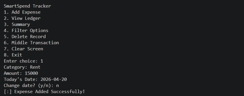 We are building a complete Smart Expense Tracker using Linked List in Python.